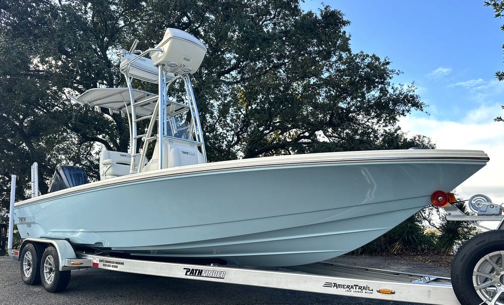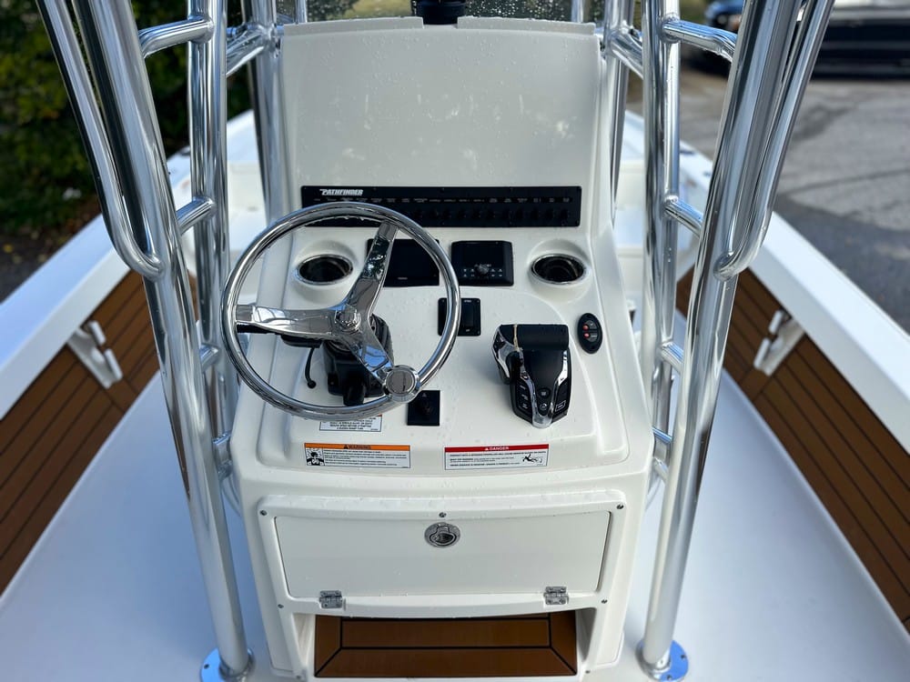 The 2500 Pathfinder Hybrid is a great addition to the Pathfinder lineup. If you're looking for versatility, this is the one for you. Huge bow deck, tons of interior space, and the best range of all large bay boats out there. Other details include: